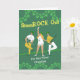 Anpassa det här St. Patrick-Day-hälsningskortet för en dotter som är en artist och stjärna i din klan. Ett S:t Patrick-Day-band finns på kortet omgivet av schamprockens dekorationer. Art, bild och versell copyright © Shoaff Ballanger Studios, 2022.