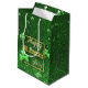 Elegant guldgul glitter-glamorös St. Patrick-Day-illustration med 3d-guld-typografi i gräns i guld glitter med klassskamrock klöver på en värdefull grönt.