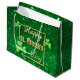 Elegant guldgul glitter St. Patrick's Day-illustration med 3d-guld-typografi i en gräns i guld glitter med klassschamprock klöver på en värdefull grönt.