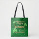 Elegant guldgul glitter St. Patrick's Day-illustration med 3d-guld-typografi i en gräns i guld glitter med klassschamprock klöver på en värdefull grönt.