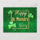 Elegant guldgul glitter-glamorös St. Patrick-Day-illustration med 3d-guld-typografi i gräns i guld glitter med klassskamrock klöver på en värdefull grönt.