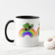 Det här kaffet mugg har en färgstark regnbåge och Leprechaunsar Hat på en lush grönt bakgrund. En gåva till Sankt Patrick-perfekten