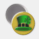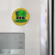 St Patrick's Day: Leprechaun Hat - LEHA100 © Sunny Mars Design. Den här rundmagneten har en grönt leprechaun som ett svart band runt den, ett guld-låsbeslag och en schamprock fäst vid den.