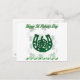 Ett vykort från St. Patrick-Day med hästar, hästskor och schampon.
