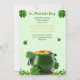 St. Patrick's Day Irish Shamrock Party Investigation with Guld Bowl and Cloverleaf. Formuläret är förberett redo för att anpassa inbjudan med dina egna uppgifter.