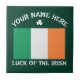 St Patrick's Day Ireland Flag Custom Name Shamrock Kakelplatta