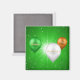 Ett exempel på St. Patrick's Day: 3 ballonger i den irländske färg-grönten, vit, orange med texten "Lycklig St. Patrick's Day" i guld brev på en grönt med gnistrande stjärnor.