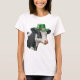 T-shirt för St. Patrick's Day eller när du vill visning ditt irländska pride med en vattenfärgsbild av en svart och vit ko med en kelly grönt top hat med guld-band, en vit dag och schampo framför hatten. Ytterligare stilar finns tillgängligt. Bilden kan behöva justeras för olika storlekar.