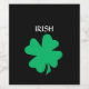 Tryckt med grönt Irish shamrock plant in solid black bakgrund with text template ’Irish’, for Saint patrick's day. Du kan ändra texten eller bakgrunden till färg som du vill.