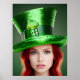 AI-genererad kvinna med rött hår och en stor grön topphatt för St. Patrick's Day