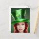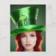 AI-genererad kvinna med rött hår och en stor grön topphet för St. Patrick's Day