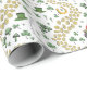 Den här nykterliga, handritade St. Patrick-Day som omsluter papper innehåller flera ikoniska irländska bilder, däribland grönt klöver, schamprock guld mynt, en dej av guld i slutet av regnbågen, en leprechaun-hatt, grönt svampar, grönt-hjärtan och irländsk välsignelse, "Wishing you oändless tur and joy!". Allt i en roligt mönster.