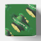En roligt mycket grönt och irländsk design för St patrick's day med en leprechaun hatt bredvid en depåt i guld.