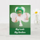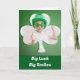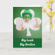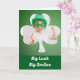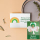 Saint Patrick's Day välkomstkort med en stilren grön design med en klöverformad utskärning för ditt favoritfoto. Inkluderar ett glatt meddelande, vilket gör det till ett perfekt sätt att dela den festliga känslan! 🍀✨