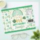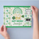 [ALL Text is EDITABLE] Tema: St patrick's day Rainbow Shamrock. Tillfälle: Kid Födelsedagsfest. Stil: Cute, Elegant, Boho. Färg: Grönt, Guld, Vit. Grafik: Regnbåge, Vattenfärg, False Guld.