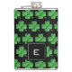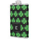 St patrick's day Lucky Shamrock Mönster Monogram-kolv Designad med anpassadets svarta bakgrund och fyrklövra schampar som mönstras runt kolven. Modern och enkel stil-monogram på framsidan i vitt block brev på svart gräns ram. Gör en underbar Saint patrick's day-present till honom. KLICKA PÅ ALTERNATIVET ANPASSAT MALL OCH ANGE MONOGRAM INITIAL.
