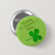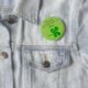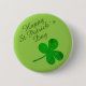 Knapp med texten Lycklig St. Patricks's Day med en grönt Irish Shamrock för tur. Du kan ändra texten. En fin grönt fyra löv klöver ligger på gröntens bakgrund. Du kan ändra bakgrunden färg om du vill.