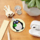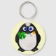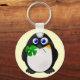En söt liten tecknad penguin som bär en stor grönt schamprock i sin skak.