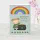 En Saint patrick's day-hälsning för mordotter med söt flicka, guld och regnbåge på gröntens blommigt.