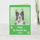 Den här söta Gräns Collie-hund har på sig sin schackröda och är redo att fira St. Patrick-dagen! Texten på kortets framsida kan vara personlig och teckensnittet ändras. Insidan av kortet är ett ljust grönt färg. Det finns en enda grönt schyssta på baksidan av kortet.