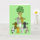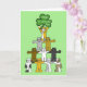 Tecknad katter av olika färg som står på varandras axlar. Den högsta katten håller en skamrock som har skrivit "Lycklig St patrick's day" på den.