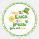 Den här festliga helgdag-klistermärket innehåller textbilden "May the tur of the Irish be with you" med irländsk hatt, mynt och schampar på en grönt som är täckt av bakgrunden. Perfekt för din St patrick's day!