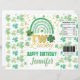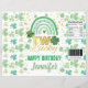 Tema: St patrick's day Rainbow Shamrock. Tillfälle: Kid Födelsedagsfest. Stil: Cute, Elegant, Boho. Färg: Grönt, Guld, Vit. Grafik: Regnbåge, Vattenfärg, False Guld.