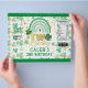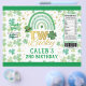 [ALL Text är EDITABLE, utom TVÅ Lucky] Tema: St patrick's day Rainbow Shamrock. Tillfälle: Kid Födelsedagsfest. Stil: Cute, Elegant, Boho. Färg: Grönt, Guld, Vit. Grafik: Regnbåge, Vattenfärg, False Guld.