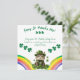 Fira St. Patrick's Day med detta söta välkomstkort med en söt katt klädd som en leprechaun med regnbågsdekorationer! Det festliga meddelandet inuti önskar tur, skratt och bus för en perfekt högtid. Bra för kattälskare, vänner och familj som njuter av en touch av irländsk charm. Sprid St. Paddy's Day-anda med detta roliga och lyckliga kort!