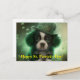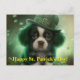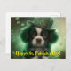 Ett vykort på St. Patricks Day med en söt valp. Framsidan visar en valp och säger: Lycklig St. Patrick's Day.