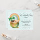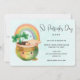 St. Patrick's Day-inbjudan med en vacker illustration som visar en leende grönt och guld med en söt regnbåge, ett moln från lycklig och lite grönt klöver.