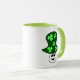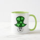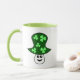 En svamp i tecknaden med en översta grönt formad som en leprechaun-hatt. Hatten har schamponfläckar. Den vita stjälken har en smiley face.