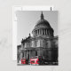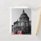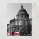 Svartvit bild av St Paul's Cathedral London med en selektiv färg Dubbla Decker London Buss