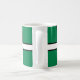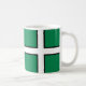 Mugg med utformning med ett flagga av det historiska grevskapet Devon, i England, Underbara Storbritannien; grönt flagga med ett vitt kor med ett svart gräns