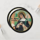 St. Ro i Lima (1586-1617) ville bli nunna, men far vägrade att tillåta det. Men så småningom tilläts hon att gå med Saint Dominics tredje order att leva ut sin apostolat hemma. + I detta stiliserade porträtt är St. Ro klad i en Dominikansk vana som består av en vit halvvit, gräddaktig färgad syndafärgad över en bältad rob av samma färg, och en svart slöja och mantel. På huvudet bär hon en krona av torgen som St. Catherine of Siena, hennes förebild, i stället för hennes vanligare attribut: krona i ro. (Ro är dock inkorporerat i bild, som inte är synligt här, i den utsökta ovala ram). I hennes höger håller hon en sprejspruta av lögner som visar hennes status som en oskuld i följd. I bakgrunden finns ett tropiskt peruanskt landskap. + St. Ro i Lima är den första katolska i Amerika som förklaras som helgon. Hon är beskyddare av trädgårdsodlare och blomsterarbetare samt Peru, Amerika och Filippinerna. + Feast: 23 augusti + Image Kredit (K 48): Detail of an antique image of St. Ro of Lima, from Henry Riancey's La vie des Saints: illustrée en chromolithographie, d'aprè s les manuscrits de tous les siè cles, publiée par F. Kellerhoven (Paris: Librairie Bachelin-Deflorlorlor) enne, [1874]), f. s. 288, från formgivarens privata bibliotek. Franz Kellerhoven (1814-1872), kromolitografen, var en tysk präst som flyttade till Paris och skapade en tryckbutik där. Han var specialiserad på konstverk som byggde på medeltida manusskript, men han gjorde även lithos av målningar och antika arkitektoniska verk.