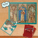 Main (Central) Panel: An angel pierces St. Teresa’s eart med en flamande pil som påminner om hennes mest berömd vision. Lämnat: St. Teresa och St John från Kor, hennes konsert och Carmelite reformer, under en bild av Heligan Trinity. Höger: Saint Teresas död i armen Bl. Anne från St. Bartholomew, hennes sekreterare och nära vän. + Image Kredit (SAU 28): Antique image of St. Teresa of Avila, chromolithograph with gilt MARKS from the Almanach Catholique de Belgique for the year 1888 (9th year of printing; Bruges and Lille: Société St. Augustin; Desclée De Brower et Cie, [1889]), p. Från formgivarens privata bibliotek. + St. Teresas fest: 15 oktober