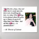 Poster citat från St. Therese of Lisieux som ligger under rosa ros. Bild i St. Therese på högerna. Rosa gräns.