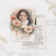 Honor the life of a loved one with this elegant Catholic memorial design featuring a serene watercolor portrait of St. Thérèse of the Child Jesus surrounded by the rosary and beautiful spring florals.