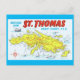 Ett vintage vykortskarta över ön St. Thomas som återanvänds på ett nytt vykort. Denna karta är så detaljerad och välillustrerad.
