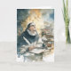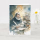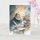 This piece becomes even richer when understood as a portrait inspired by St. Thomas Aquinas, one of the most influential theologians and philosophers in Christian history. The illustration shows him seated at his desk in deep contemplation, dressed in the traditional black‑and‑white Dominican habit that reflects his lifelong vocation. A radiant golden halo glows behind his head, symbolizing his sanctity and the divine illumination often associated with his writings.