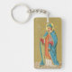I detta fullt-långa porträtt från ett sent 1800-talets devotional print framställs St. Thomas Becket som sin tidigaste typ: han framställs i sin förstahandsfigur: hög, smal och ren. Han håller sitt arkiepiscopal kor i sin höger och bär en lexikon eller Gospel bok i sin lämnat . Han är klädd i nästan fullt kanonicaler, dvs. han bär en röd dalmatisk över en vit tunik som är åtskild med rödvioletta handskar och en ljusblå kvalster. Förmodligen bär han också på fötterna som just söt ut från sina buskskinn under silke (högtidliga strumpor i) över sina biskopssandaler (lågskor som liknar tofflor eller moderna slafrar). Han saknar bara den nödvändiga pectorin kor och ring. (Att ett ring utelämnats är ett vanligt konstnärligt förbiseende.) Ett starkt blått problem med gult-grönt kompletterar det endemliga. Och så har vi det ovanligt placerade svärdet som tränger igenom huvudet från sida till sida... + Under en stor del av historien har svärdet varit det främsta försvars- och offensiva vapnet. Många helgon - både manliga och kvinnliga - har svärd som attribut. I en konografisk tvåvolymsstudie med cirka 1 000 helgon är ett svärd förknippat med mer än 15 procent eller 150 av dem! Svärdet är ett så vanligt attribut att dess ensam i regel inte räcker till för att identifiera en viss helgon. + Kontext är till hjälp. Vissa helgon, till exempel royal helgon, bär ett svärd som en symbol för sekulär kraft. Andra helgon, solskyddsfärgade, vinklade ord som en symbol för deras yrke. På sällsyntet tillfälle bär vissa helgon till och med två eller tre svärd med olika innebörd. Men för det mesta är helgon med svärd röda martyrer, det vill säga helgon som dog för Faith. + Det vanligaste är att svärdet betyder död per rubrik. I berättande konst kan själva avrättningen presenteras. I sammansättningar med figur håller Saint vanligtvis ett oskalat blad nedåt eller uppåt på sin sidopunkt. Svärdet placeras på grundval av om figur i fråga är fullt-, stående- eller halvlängdslängd som i ett skott. I fler grafiklämmor kan svärdet placeras i huvudet på ett medialt sätt, dvs. läggas i nacke, springa genom halsen eller piercing i hjärtat eller någon annan del av kroppen. + Thomas Beckys martyrskap med fyra svärd-mord började beskrivas kort efter hans död (se M 030). Inomhusbeläggningen på en altare, antalet mord med sina respektive heraldiska lager och närvaron av hans kor-bearer är tillräckligt för att skilja Becket från de flesta andra helgon. Sällsyntet skildringar av hans förklaring lämnar inte mycket utrymme för tvivel om vem som framställs. Mindre utmärkande var dock Beckys första "porträtt". Av föga intresse på ett symboliskt sätt skildrar sådana framställningar honom rutinmässigt bara som ärkebiskop utan andra emblemens, och identifieringen görs genom åtföljande inskriptioner. Beckys porträtt fick gradvis ett svärd (se M 033) och huvudsår (K 34). I samma studie som nämns i första stycket förtecknas ungefär 35 helgon som var biskopar eller ärkelbiskopar som var förknippade med ett svärd. Endast ett - eventuellt med undantag för det mindre kända St. Theodard i Maastrict - skildras dock med ett svärd som löper genom hans huvud från sida till sida: St. Thomas Becket. Det är det överlägset mest populära sättet att representera Saint i dag. + Thomas Becket är beskyddare av sekulär präster. + Feast: 29 december + Image Kredit (P 005): Detaljer för en antikisk bild av St. Thomas Becket från en nedtonad kromoxylografi från slutet av 1800-talet som ursprungligen publicerades av Friedrich Pustet, Regensburg, New York och Cincinnati. Från formgivarens privata insamling av religiösa ephemera.