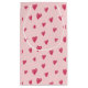 This cheerful Catholic design features St. Valentine illustrated in a hand-drawn magenta style, shown as a gentle bishop forming a heart with his hands. The artwork is framed within a soft oval, creating a clear and inviting focal point. Surrounding the oval, a pattern of hand-drawn magenta hearts is layered over a light pink background, giving the design a playful and festive feel.