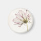 Min bild, "Stå i ljuset" på en rund magnet. En rosa blomma med tillsatt digitalt struktur och toner.