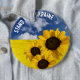 Stå med Ukrainas gult och blå med solblommor Knapp