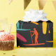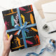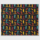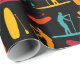 Slå ihop presenter för din favoritpadlborder i stil med den här roligten papper. Den innehåller illustrationer av padlar och padelskivor i rost röd, orange, gult och tealblått mot svart bakgrund.