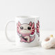 Börja din dag med ett kaos! Den här Stabbility axolotl mugg har ett mjukt, knubbig axolotl som griper ett litet knivar med ett dödviktsuttryck. Med stora, runda ögon, pastellbaserade rosa, fjädringsgälar och en obestritt men ändå ätliga närvaro är denna akvatiska kutia både charmerande och något hotfull. Den är tryckt på en högkvalitativ, hållbar keramisk mugg, det är perfekt för kaffe, te eller någon dryck som ger bränsle åt din eländiga sida.