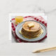 Stack av pannkakor på plattor täckta med sirap vykort