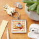 Stack av våfflar som täcks i jordgubbar fyrkantig silverfärgad nyckelring
