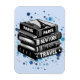En samling bokar för resor till olika städer. Svartvit popkonst stil i bokar. En bakgrund med mjuk blå färg med olika skuggor med blå vattenfärgpunkter. En roligtens resmagnet som kan bidra till ditt liv.