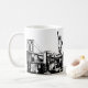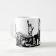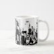 Denna mugg presenterar collage av News York City berömda symboler, Brooklyn överbryggar, Time kvadrerar, frihetsgudinnan och wall street.